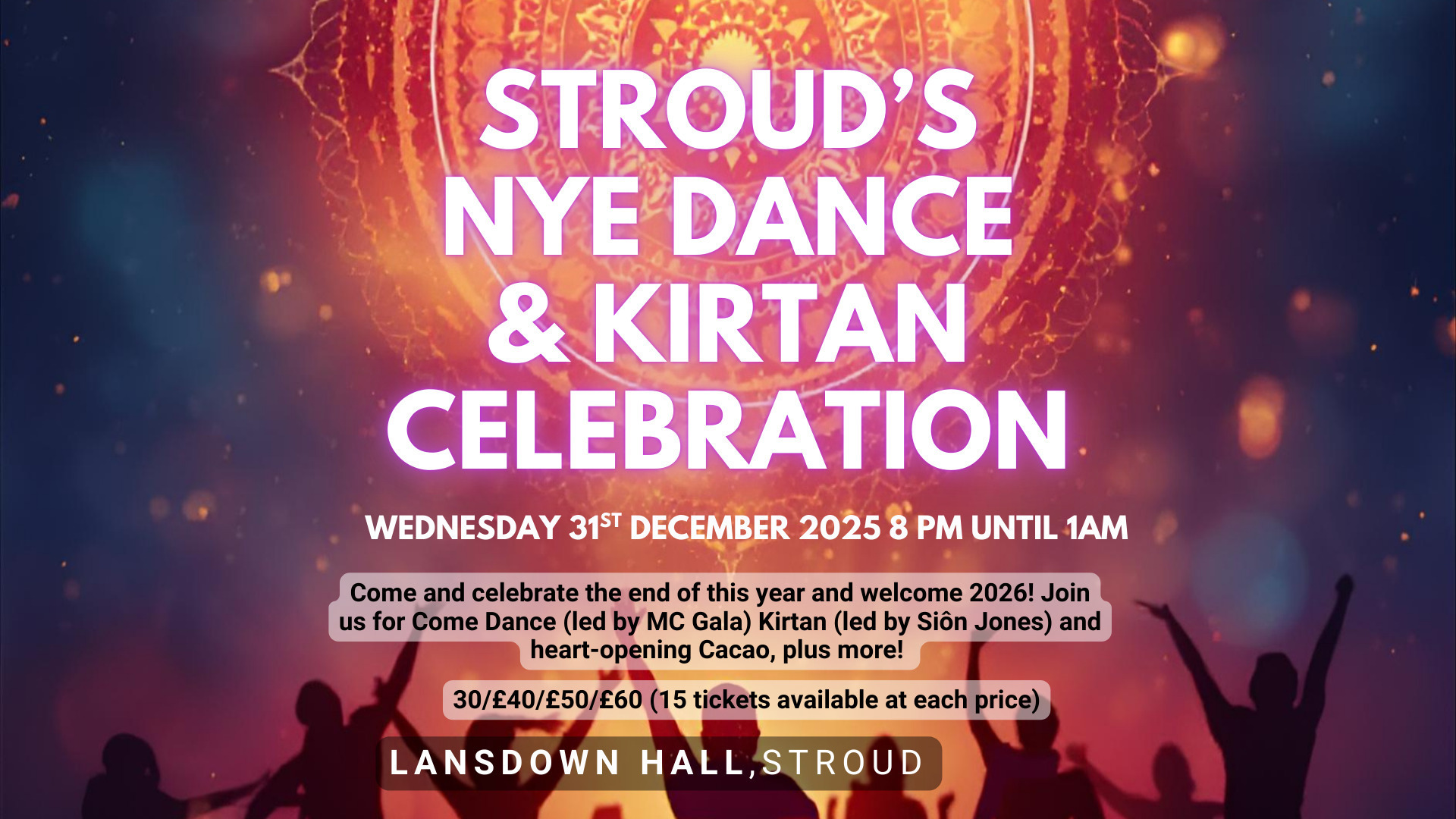 Join us at Lansdown Hall for a magical New Year's Eve journey: Including Cacao 💃 Dance with MC🎵 Heart-Opening Kirtan 🔔 Plenty of other treats